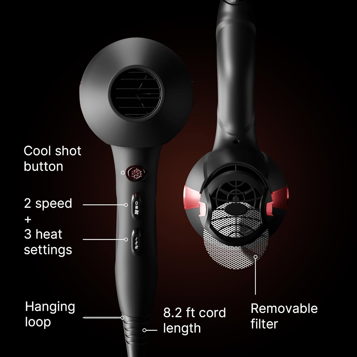 - 8.2ft Cord with Narrow and Wide Attachments: Our narrow attachment allows for a more concentrated airflow, perfect for accuracy and fast drying. The wide attachment provides a more dispersed airflow which creates a gentler distribution of air. Ideal for all hair types, our attachments help create volume while maintaining your natural hair texture. The 8.2ft cord offers added flexibility and convenience during use.