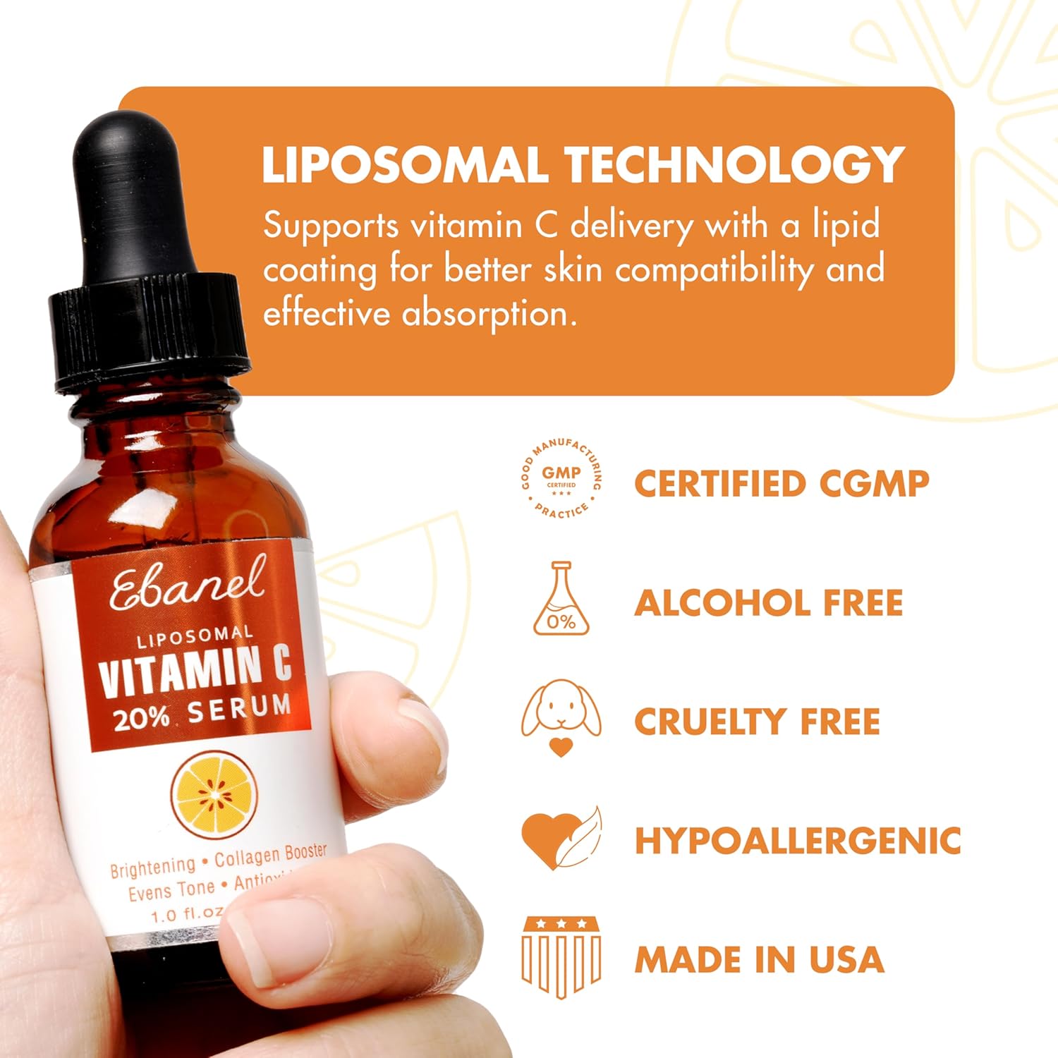 Ebanel Vitamin C Serum for Face with Ferulic Acid, Retinol, Vitamin B5 & E, Antioxidant Brightening Serum for Radiant Skin, Age-Defying Facial Care for Day and Night