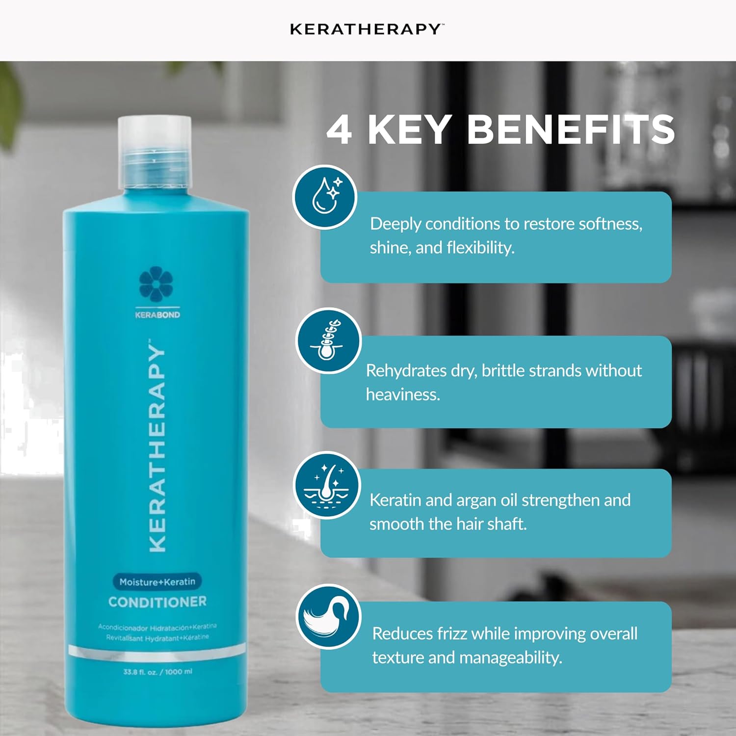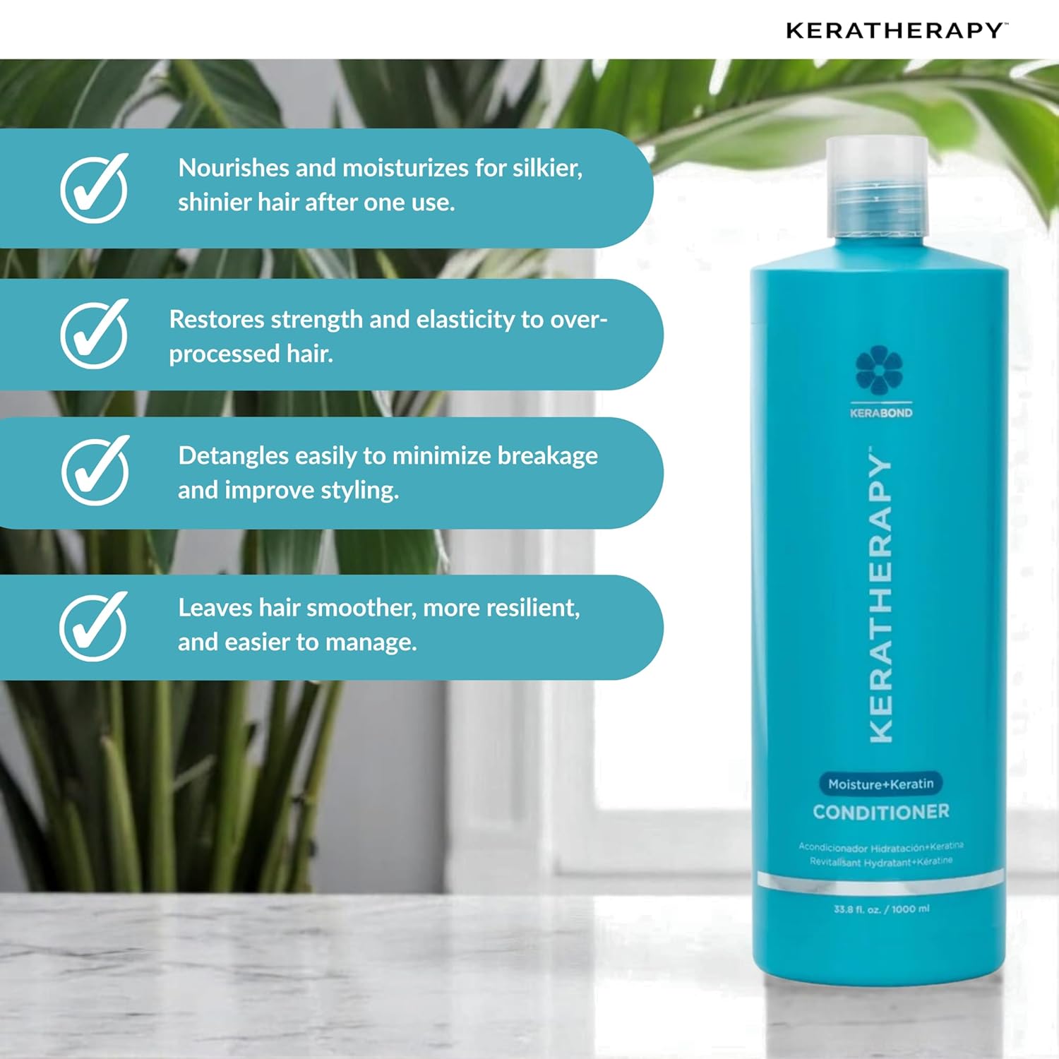 Keratherapy Keratin Infused Moisture Conditioner, 33.8 fl. oz., 1000 ml - Hydrating & Moisturizing Conditioner for Dry Hair with Collagen, Jojoba Oil, & Kerabond Technology