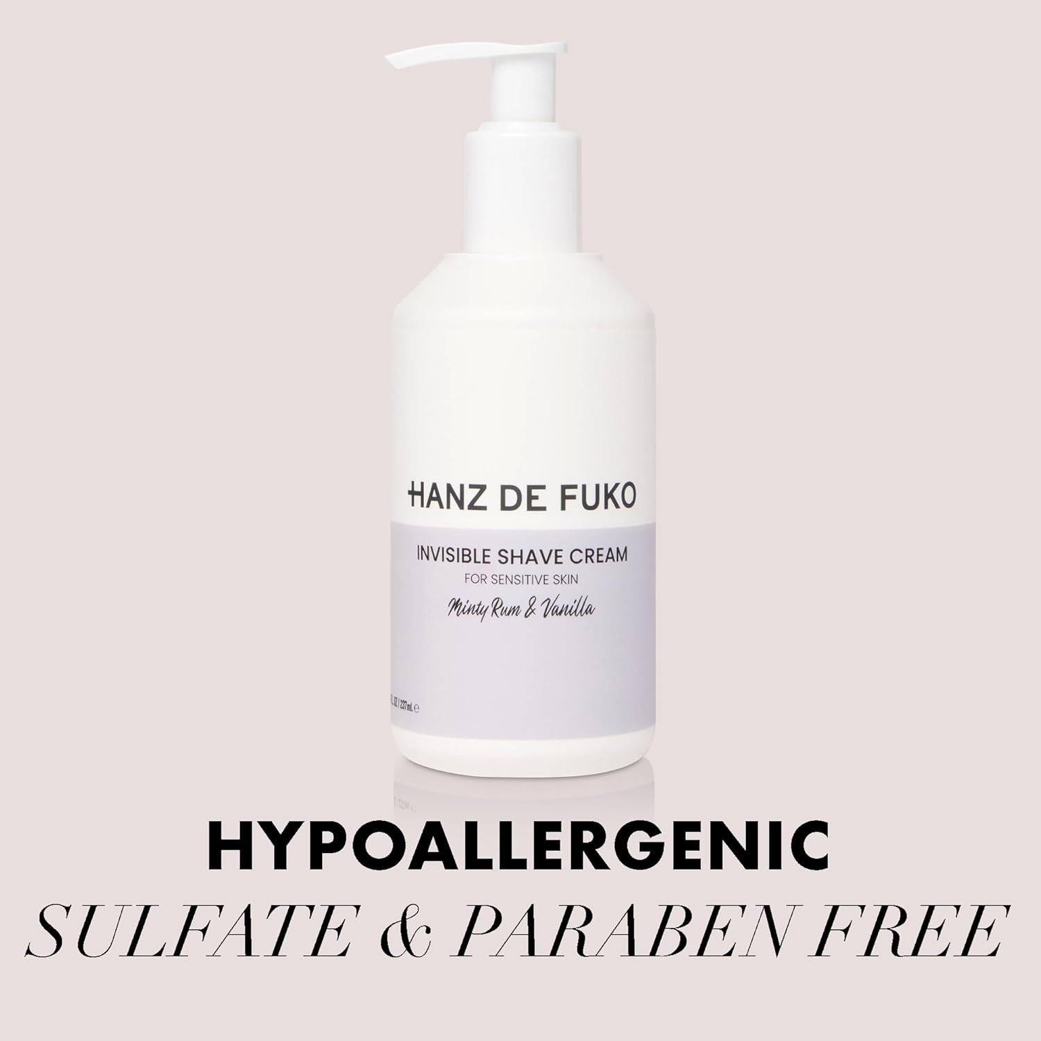 Hanz de Fuko Invisible Shave Cream for Men & Women – Premium Shaving Cream, Great for Sensitive Skin – Hypoallergenic Formula with Aloe Vera, Shea Butter, Acai – Sulfate and Paraben Free – 8 oz.