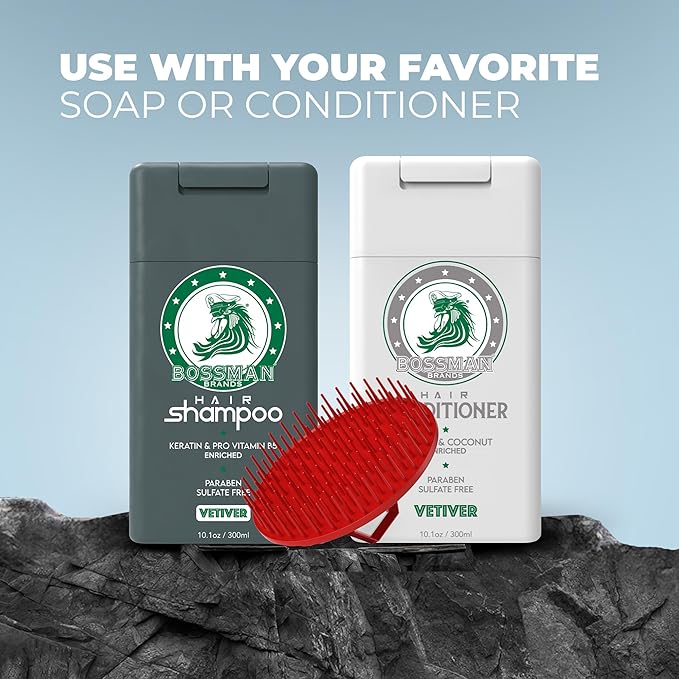 - Even Application: Strong, well-built, and sturdy, each robust shower brush strand works in harmony to spread product and deliver essential nutrients to your scalp and hair follicles for unrivaled cleansing and hair growth. Recommended for use with Bossman's 4 in 1 Bar Soap and Bossman's Fortify Conditioner
