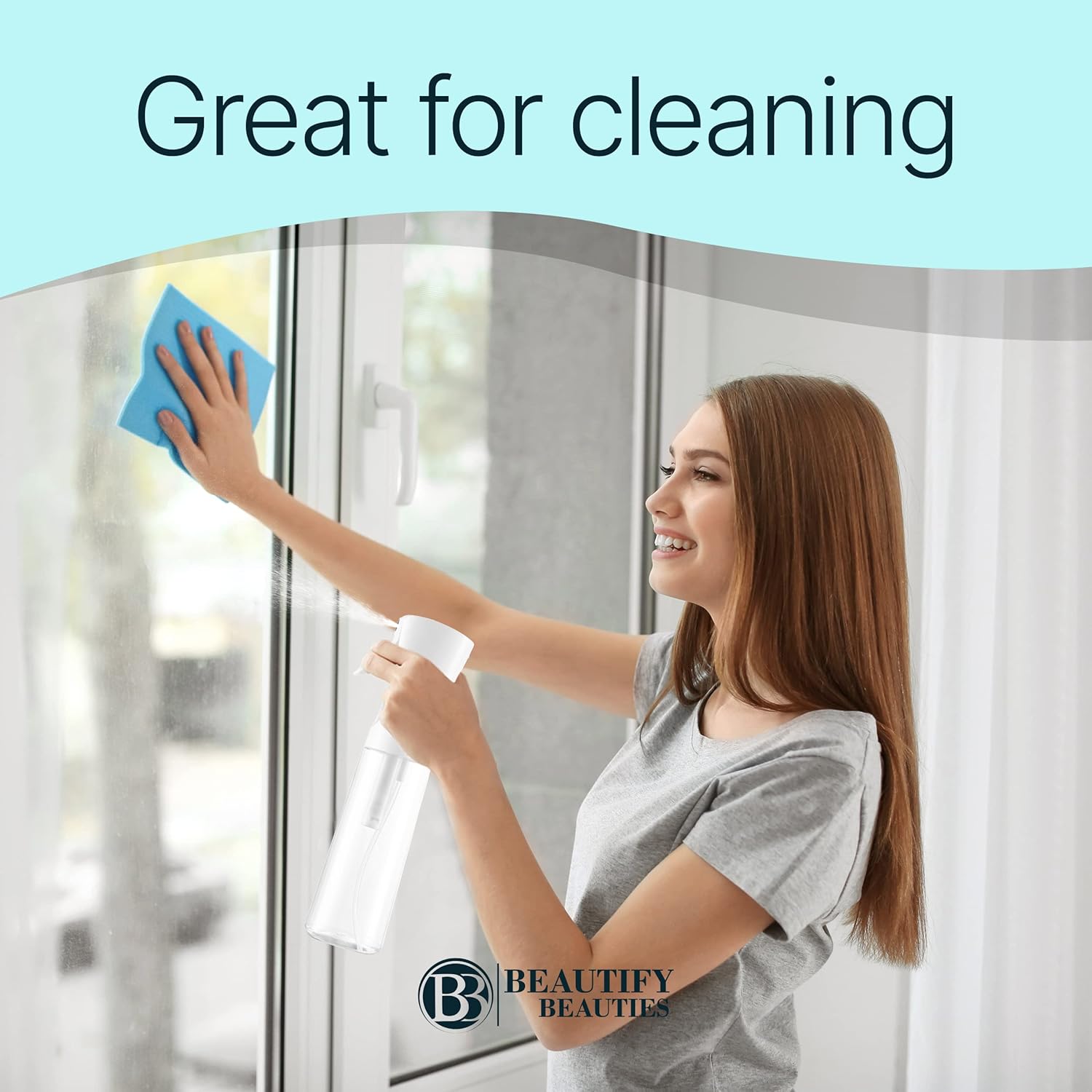 BeautifyBeauties Spray Bottle For Hair – Continuous Mister Spray Bottle for Hairstyling, Cleaning, Plants, Pets, Barbers, Salons, Essential Oil Scents (Clear, 16.9oz/500ml) 11" H x 2.6" L