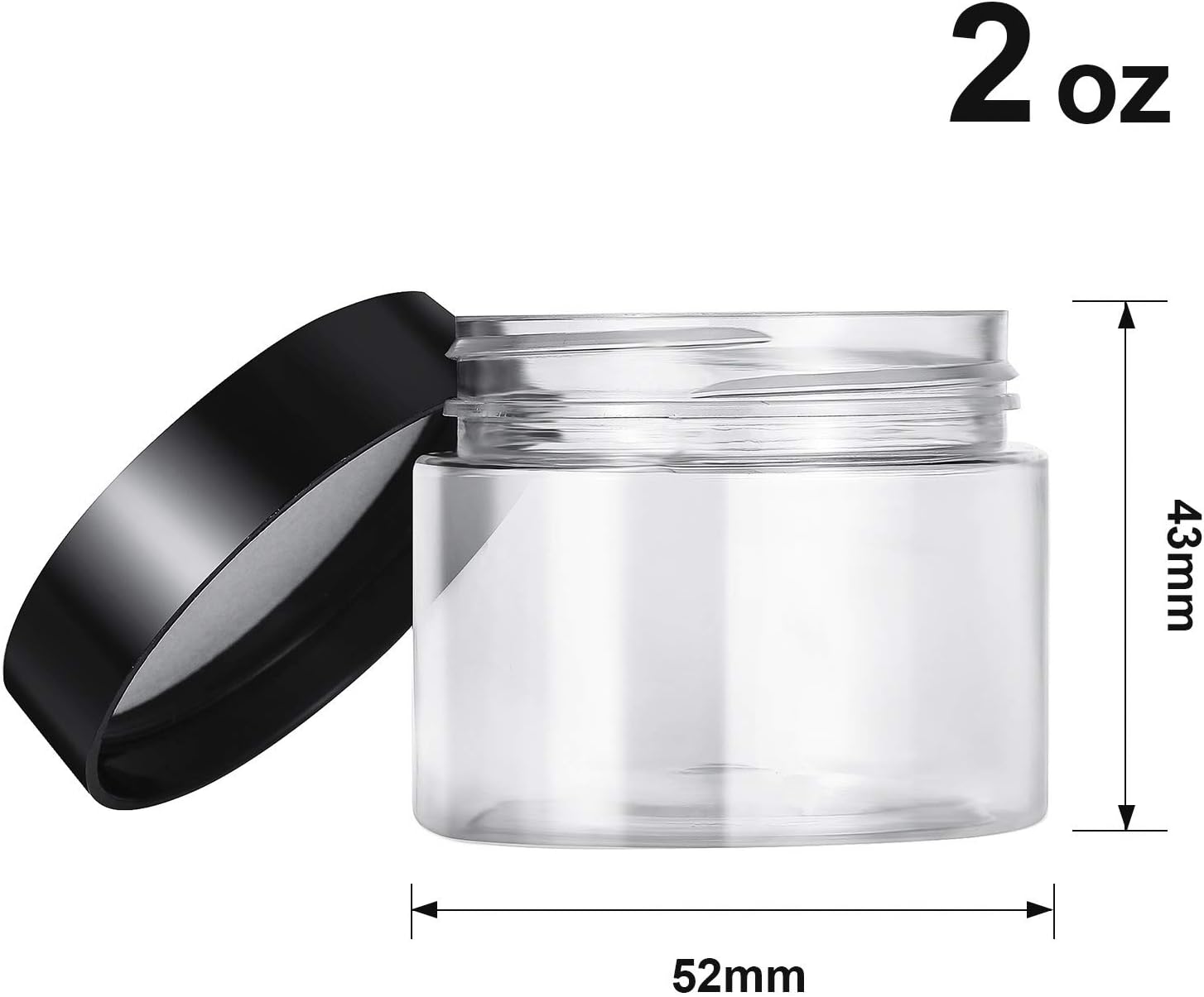 SATINIOR 12 Pack 2 oz Plastic Container Jars with Lids Round Clear Travel Cosmetic Container Slime Jars for Toiletries, Lotion, Cream, Ointments, Makeup, Rhinestone, Samples, Kitchen Storage(Black)