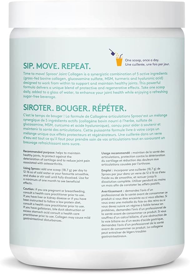 - 5 active ingredients (collagen, glucosamine sulfate, MSM, turmeric, hyaluronic acid)