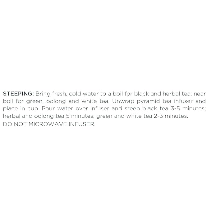 - HOW TO STEEP - Unwrap the Pyramid Infuser, steep in hot water, and reveal the exquisite nature of the whole leaf teas. Allows the tea leaves to fully unfurl in the water, resulting in a most flavorful cup of tea. Do not microwave pyramid infuser.