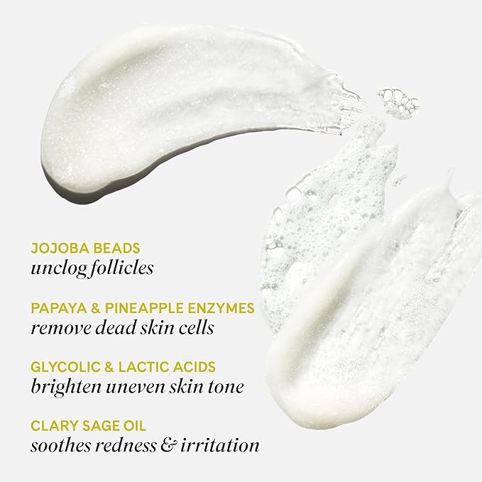 - Powerful Exfoliation: This gentle, silky exfoliator combines chemical and physical exfoliation with eco-friendly Jojoba Beads to prevent ingrown hairs and remove excess sebum. Pineapple and Papaya enzymes deliver natural AHAs to remove dead skin cells and lift dark marks.