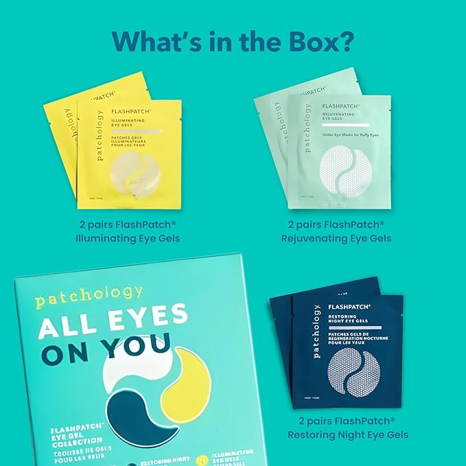 - BEAUTY TRAVEL EYE PATCHES ESSENTIAL: These convenient, travel-friendly eye masks are your perfect companion on the go. Whether you're recovering from a long flight or a late night, Patchology All Eyes On You eye patches provide instant relief and beauty recovery, leaving your eyes looking bright and revitalized.