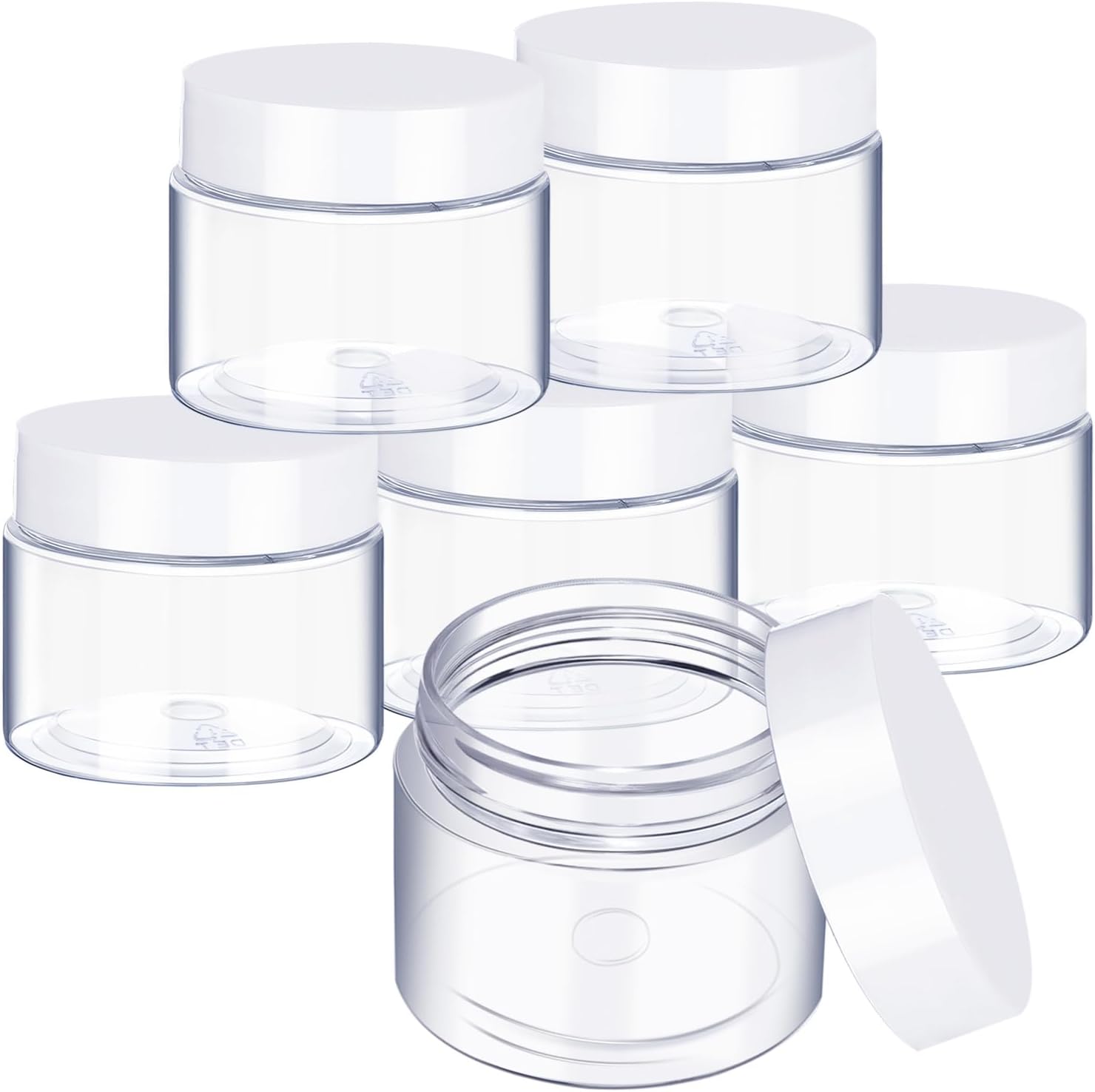 SATINIOR 6 Pack 1 oz Plastic Jars Containers with Lids Wide-mouth Refillable Leakproof Reusable Round Empty Jars for Travel Cosmetic Dry Food Spice Candy Cookie Home Kitchen Organizing(White)