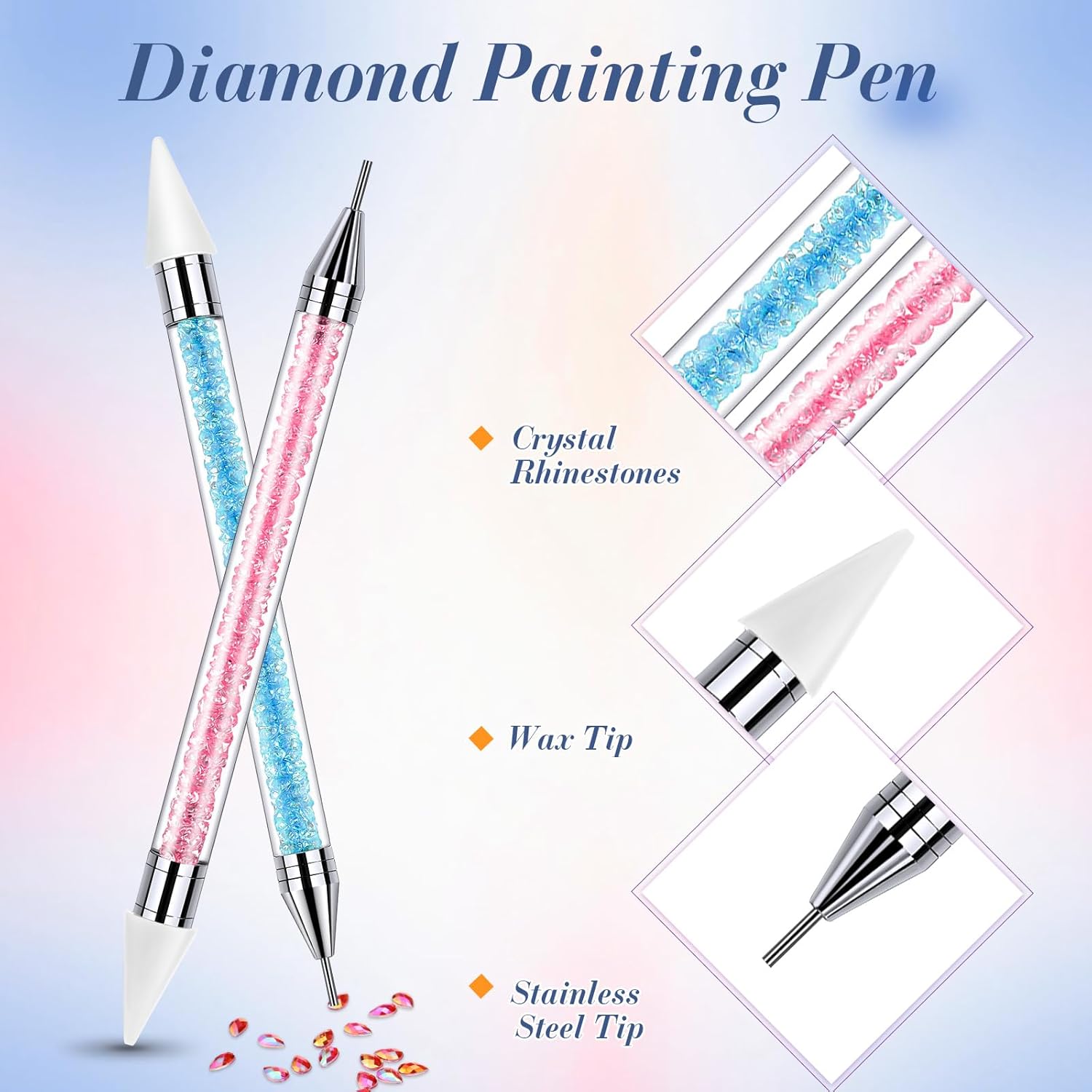 - Double head rhinestone picker: the wax tip is for picking rhinestones and the stainless steel tip presses them to stay on the nail surface or with some wax on tip to pick gems, meet different needs during your crafts