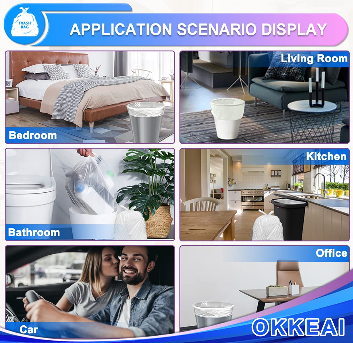 - MULTI PURPOSE:Our bathroom trash can bags are very suitable for office, kitchen, living room, bedroom, bathroom, diaper disposal, Paper shredder, cat litter, dog dung, car garbage, etc