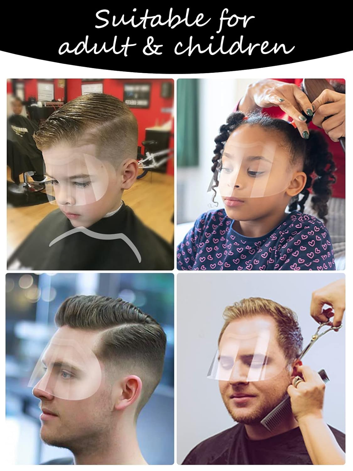 - 100 Pcs Lightweight Visors: Our Visors are made of plastic and have a medically tested adhesive strip which is gentle on the skin.It is very transparent and you can enjoy watching video and play cell phone games during hair cutting.