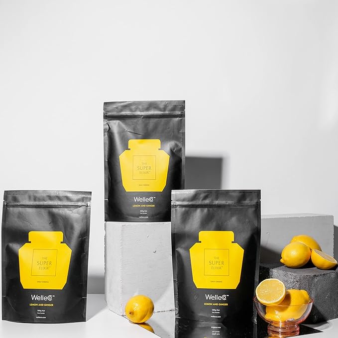 WelleCo The Super Elixir Daily Greens Powder, Probiotic Drink Mix with Whole Foods, Gluten Free, Vegan Gut Health Powder, Energy, Immunity, Healthy Skin, Hair & Nails (300g, Lemon Ginger)