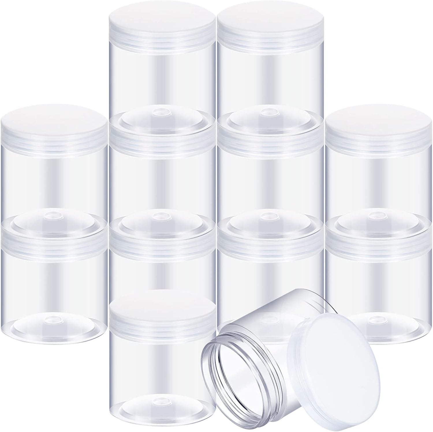 SATINIOR 12 Pack 7 oz Plastic Container Jars with Lids Round Clear Travel Cosmetic Container Jars for Toiletries, Lotion, Cream, Ointments, Makeup, Rhinestone, Samples, Kitchen Storage(Clear)