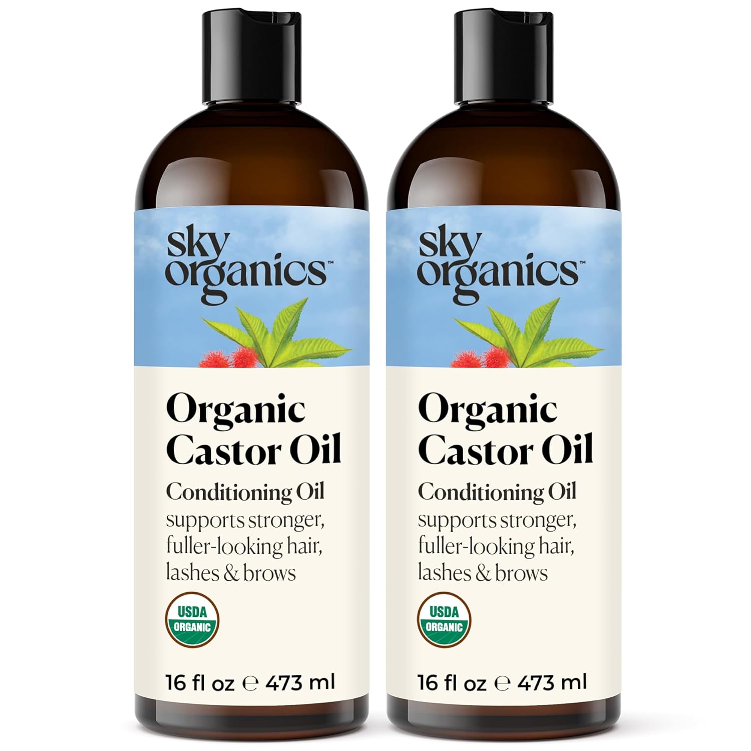 Sky Organics - Castor Oil Organic - Volumizing Hair Oil - Scalp, Lashes, Brows - Pure Castor Oil Cold Pressed - Natural Conditioner - Omega Fatty Acids, Vegan - Beauty, Hair,16oz, 2 Pack w Ebook