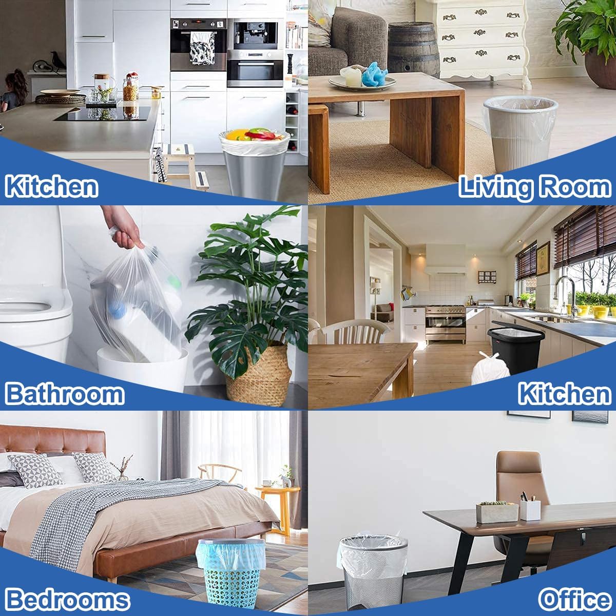 - Multi purpose:Our bathroom trash can bags are nice for offices, kitchens, living rooms, bedrooms, bathrooms, diaper disposal, shredders, cat litter, dog manure, car waste, and more