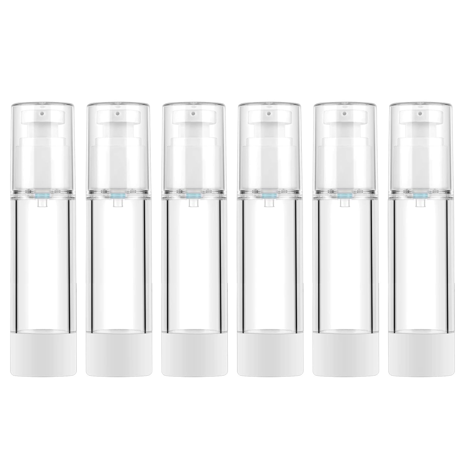 LONGWAY 1.7 Oz 50ml Clear Airless Cosmetic Cream Pump Bottle Travel Size Dispenser Refillable Containers/Foundation Travel Pump Bottle for Shampoo (Pack of 6)
