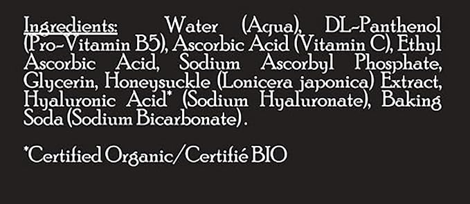 - Key Ingredients: Natural & Organic Certified ingredients, including Ascorbic Acid (Vitamin C), Glycerin, and Honeysuckle (Lonicera japonica).