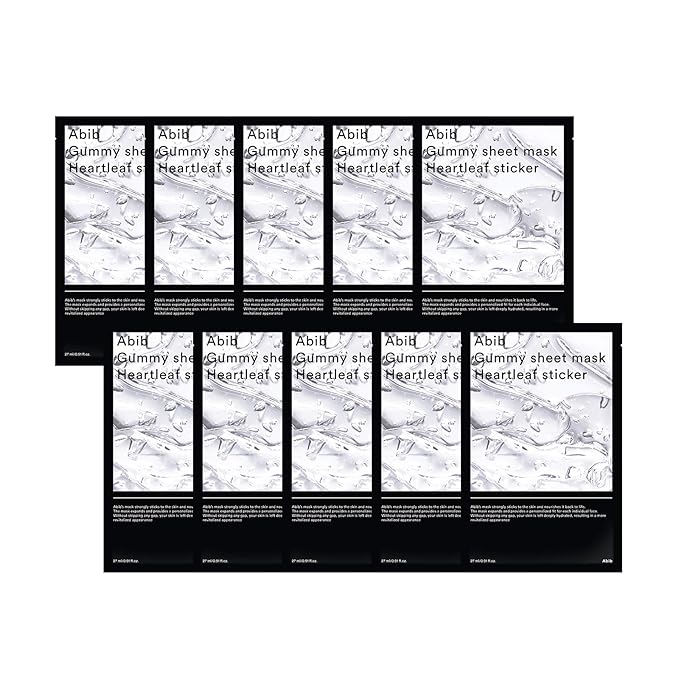 Abib Gummy Sheet Mask Heartleaf Sticker 10 Sheets I CICA Soothing for Sensitive and Dry Skin, Refreshing and Hydrating Korean Facial Mask