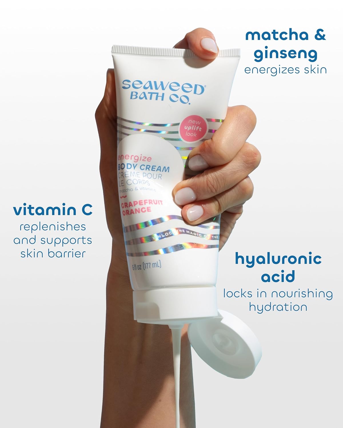 Seaweed Bath Co. Energize Body Cream - Grapefruit Orange | Hand and Body Lotion with Vitamin C, Hyaluronic Acid and Shea Butter | Invigorating Moisturizer For Dry Skin | 6 oz