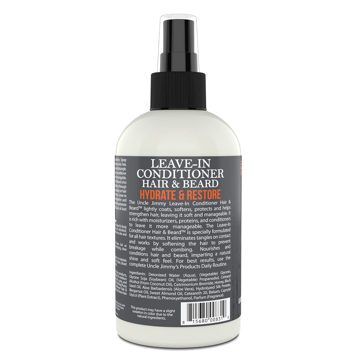 Uncle Jimmy Products Leave-In Conditioner for Healthy Beard Growth, Softening Hair, Hydrating Skin, and Eliminating Dandruff - 8 Fl Oz