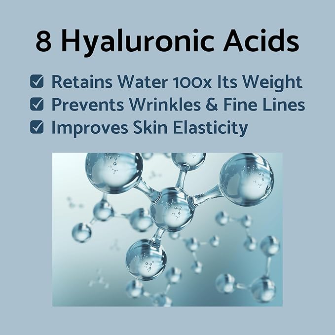 - ๐ฆ Multi-Level Hydration: Infused with a powerful combination of 8 types of Hyaluronic Acid, our cream locks in moisture up to 100 times its weight, ensuring 24-hour hydration for a plump, smooth complexion.