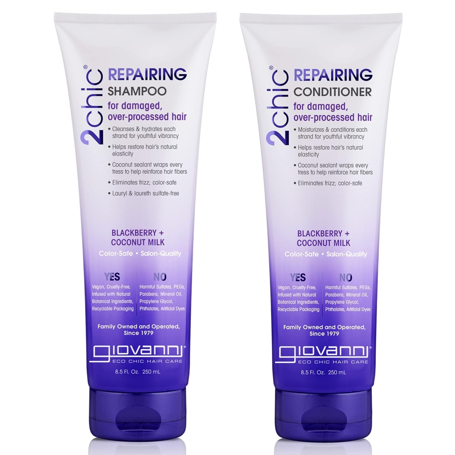 GIOVANNI 2chic Ultra-Repairing Shampoo & Conditioner Set - For Damaged, Over-Processed Hair, Helps Restore Hair's Natural Elasticity, Blackberry & Coconut Oil, Shea Butter, Color Safe - 8.5 oz Each