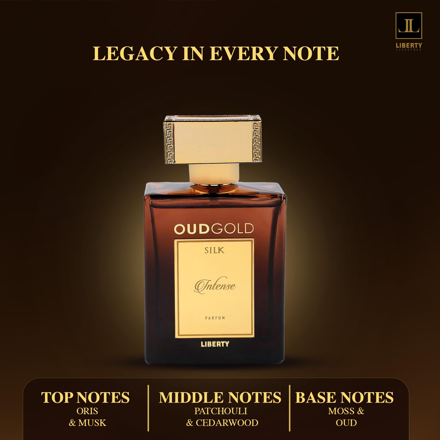 Liberty Premium Oud Luxury Seductive Long Lasting (3 days) OudGold Silk Intense Parfum for Men & Women (100ml/3.4Oz), Designed in France, Woody Notes
