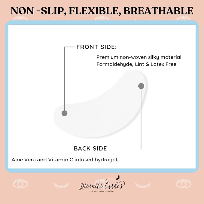 - Sticks & Fits - We know how crucial it is for eyelash pads to fit. This hydrogel eye patch features just the right amount of adhesion that stays in place for up to 2 hours, no residue. Flexible & breathable ensure your client has the best experience.