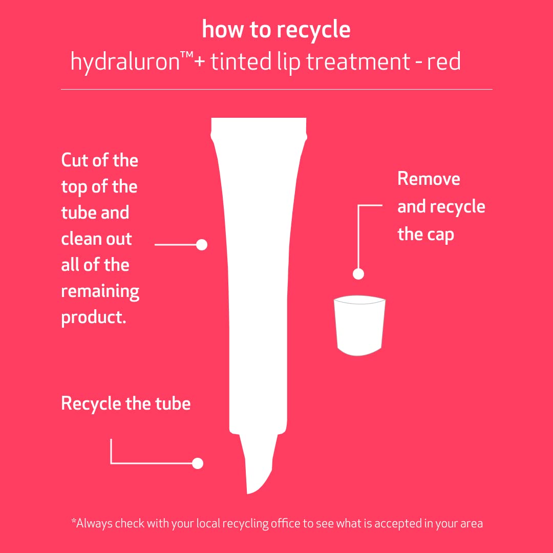 - An extension of our original and immensely popular Hydraluron + Volumizing Lip Treatment, offered in 4 new lip shades: Pink, Indeed Pink, Red and Peach! Hydraluron + Volumizing Lip Treatment uses peptides that stimulate skin’s natural synthesis of hyaluronic acid to increase lip hydration over time.