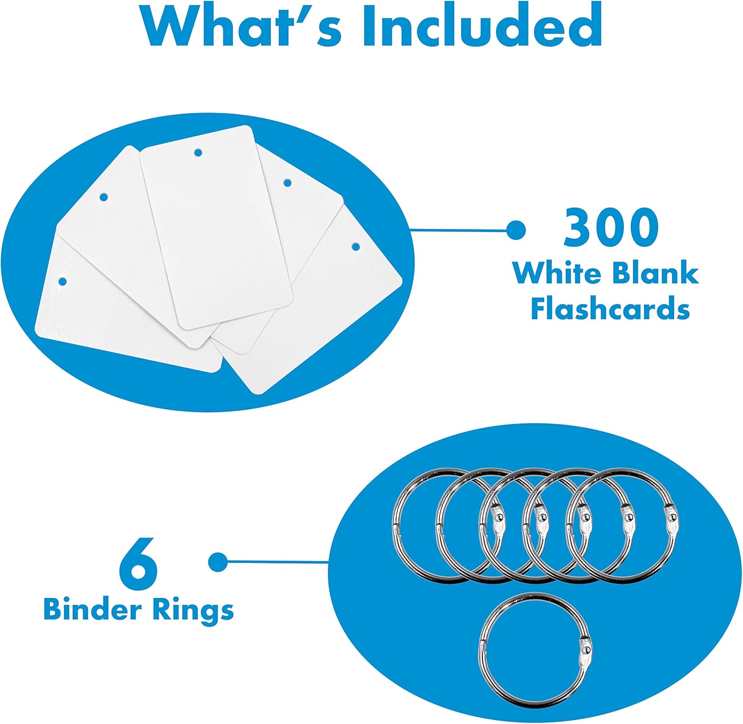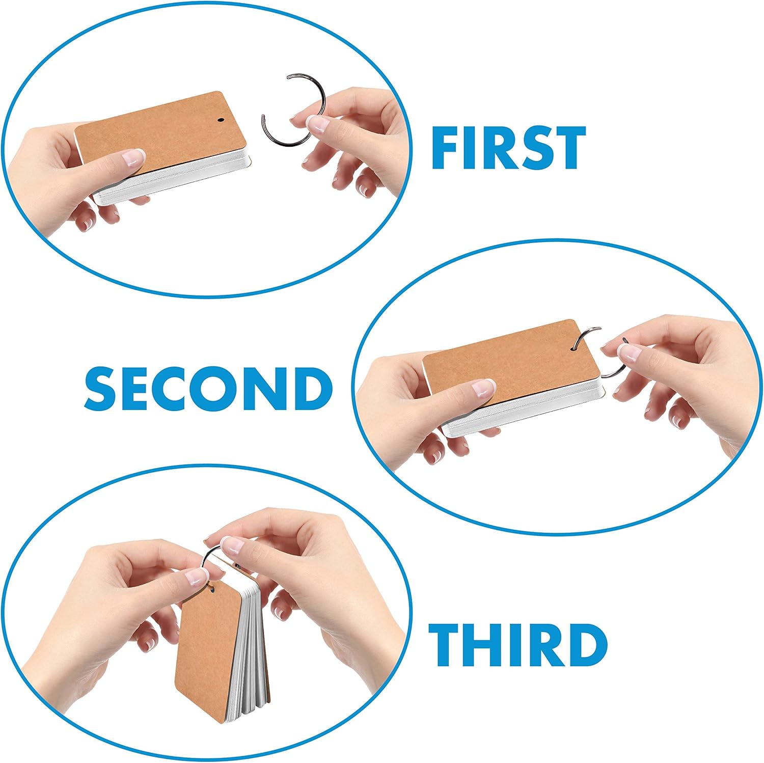 300 Pcs White Blank Customizable Index Flash Study Note Card Pad Kraft Paper with Binder Ring (50 Sheets per Set)