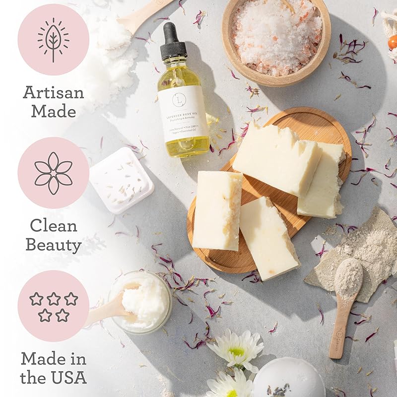 - INCLUDES: All-natural bath set includes: ❀ Lavender natural soap bar ❀ Body Scrub ❀ Shea Butter Cream ❀ Bath Salts ❀ Bath Bomb ❀ Eye Mask ❀ Shower Mist ❀ Body Oil ❀ Candle ❀ Clay facial mask ❀ Natural lip balm ❀ Face Towel ❀ Cosmetic Bag ❀ Soap saver ❀ Gorgeous box