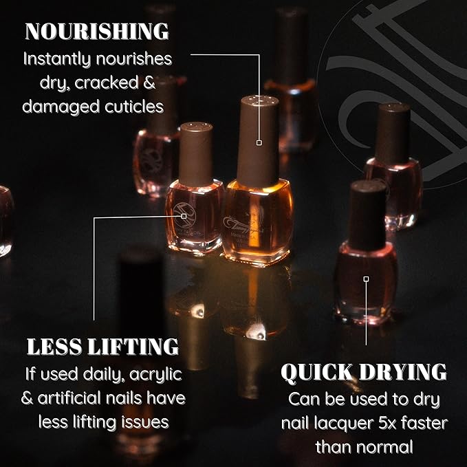 - Infused with sweet almond oil & jojoba oil for nails, this enriching serum revitalizes cuticles, for both naturals & acrylics. Our vibrant cuticle nail moisturizer will compliment any gel or lacquer.
