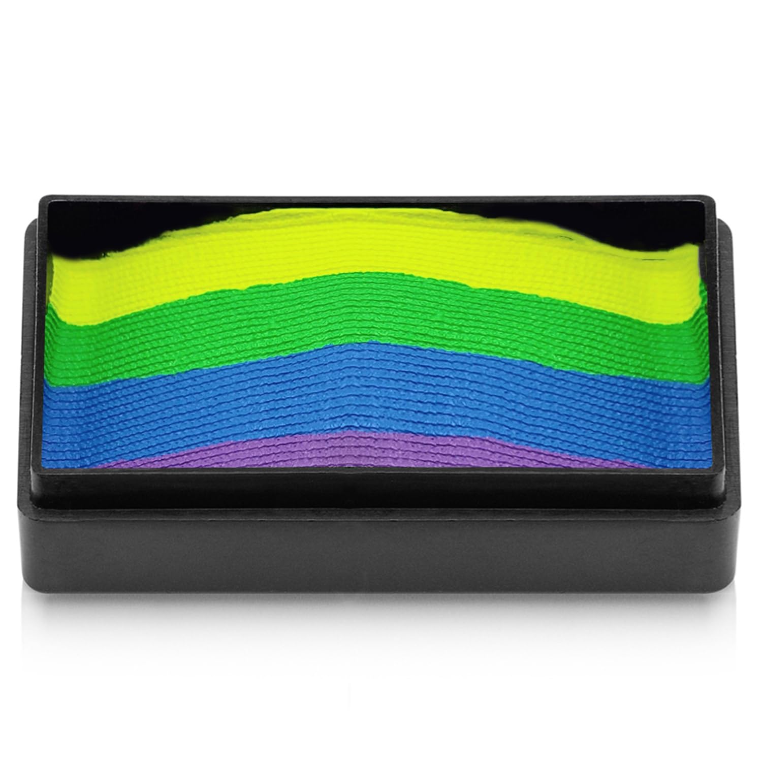 - UNIQUE DOMED SHAPE FOR LESS WASTE & MORE CONTROL: Kraze FX Domed Neon 24-Stroke Cake is designed with a raised center that solves the common issues of traditional split cakes. The innovative dome shape prevents the center from wearing out too quickly, helps load brushes faster, reduces product waste, and gives artists better control. Combined with a creamy, wax-based formula and bold neon colors, it's perfect for creating fast, vibrant face and body art at events, parties, and festivals.