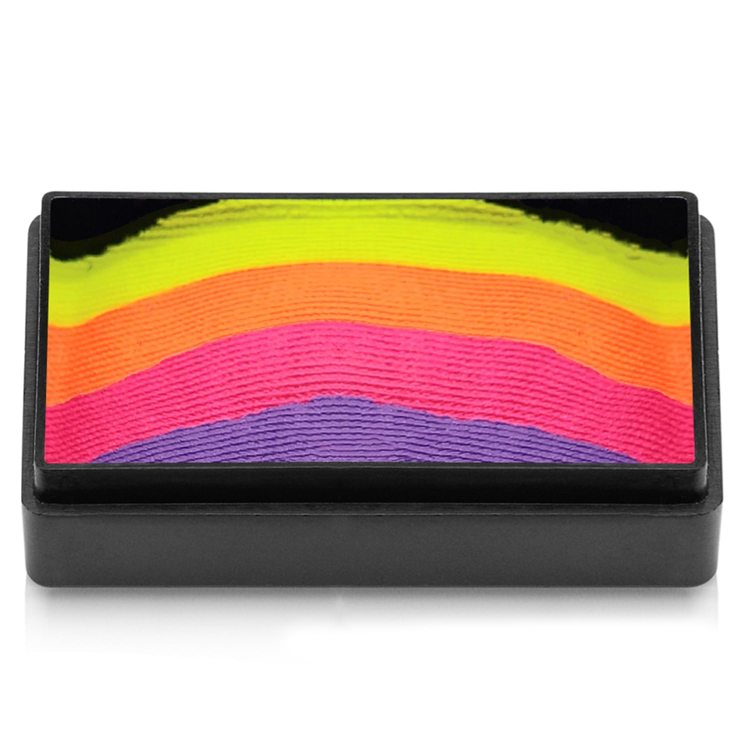 - UNIQUE DOMED SHAPE FOR LESS WASTE & MORE CONTROL: Kraze FX Domed Neon 44-Stroke Cake is designed with a raised center that solves the common issues of traditional split cakes. The innovative dome shape prevents the center from wearing out too quickly, helps load brushes faster, reduces product waste, and gives artists better control. Combined with a creamy, wax-based formula and bold neon colors, it's perfect for creating fast, vibrant face and body art at events, parties, and festivals.