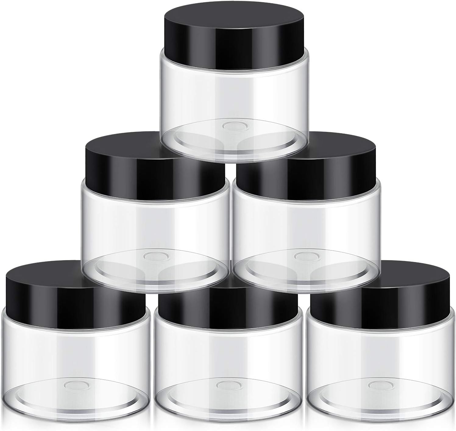 12 Pack 7 oz Plastic Container Jars with Lids Round Clear Travel Cosmetic Container Jars for Toiletries, Lotion, Cream, Ointments, Makeup, Rhinestone, Samples, Kitchen Storage (Black)