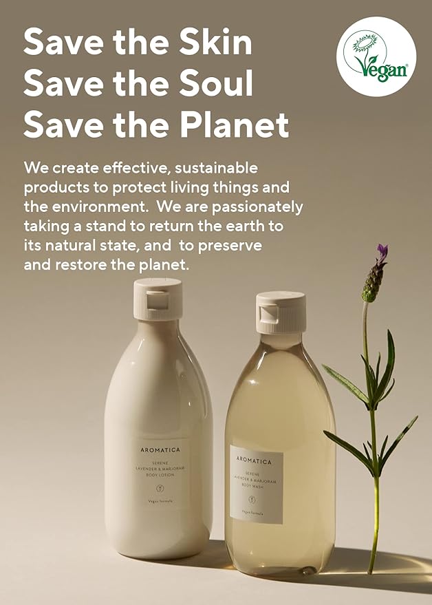 AROMATICA Serene Body Lotion Lavender & Marjoram 10.14oz / 300ml, Vegan | Soothing Body Moisturizer | Light Relaxing Scent | For Normal to Dry Skin | with Shea Butter