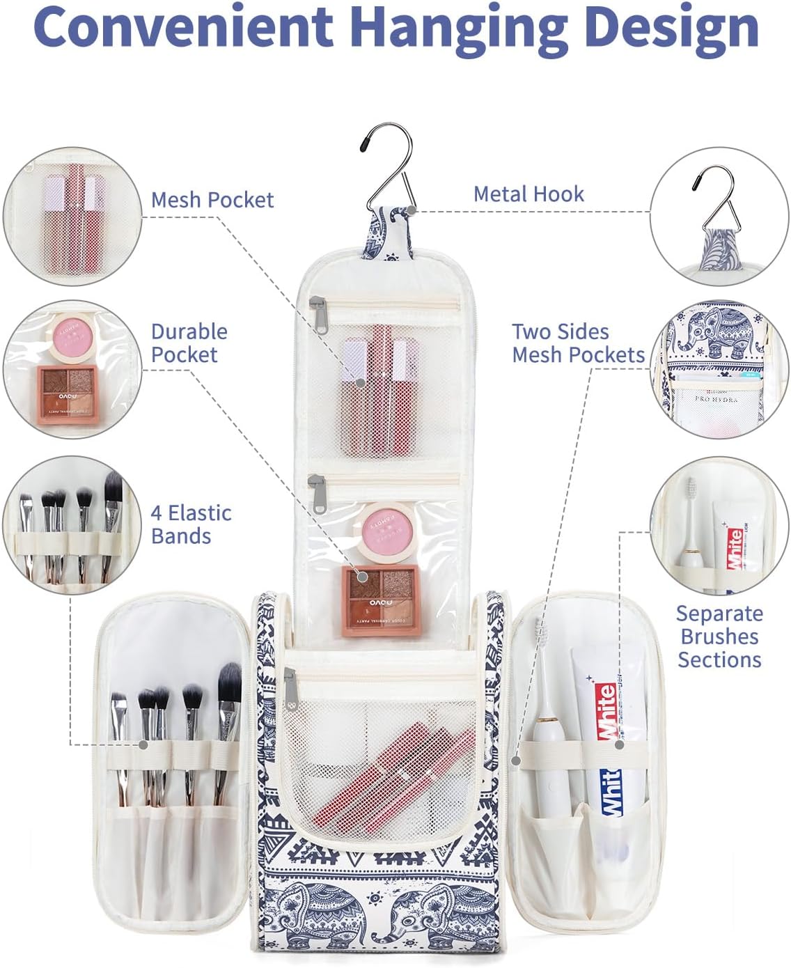Narwey Small Hanging Toiletry Bag Women Travel Makeup Bag Organizer Toiletries Bag for Travel Size Essentials Accessories Cosmetics (Medium, Elephant)