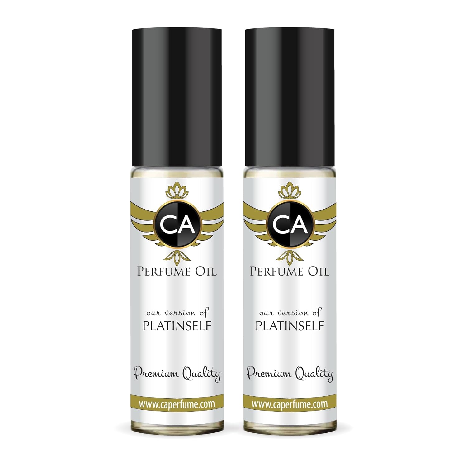 CA Perfume Impression of Platinself for Men Eau De Parfum Woody Floral Musk Scent Long Lasting Cologne for Men Travel Size TSA Ready for Day and Night Wear 0.33 Fl Oz 10ml (Pack of 2)