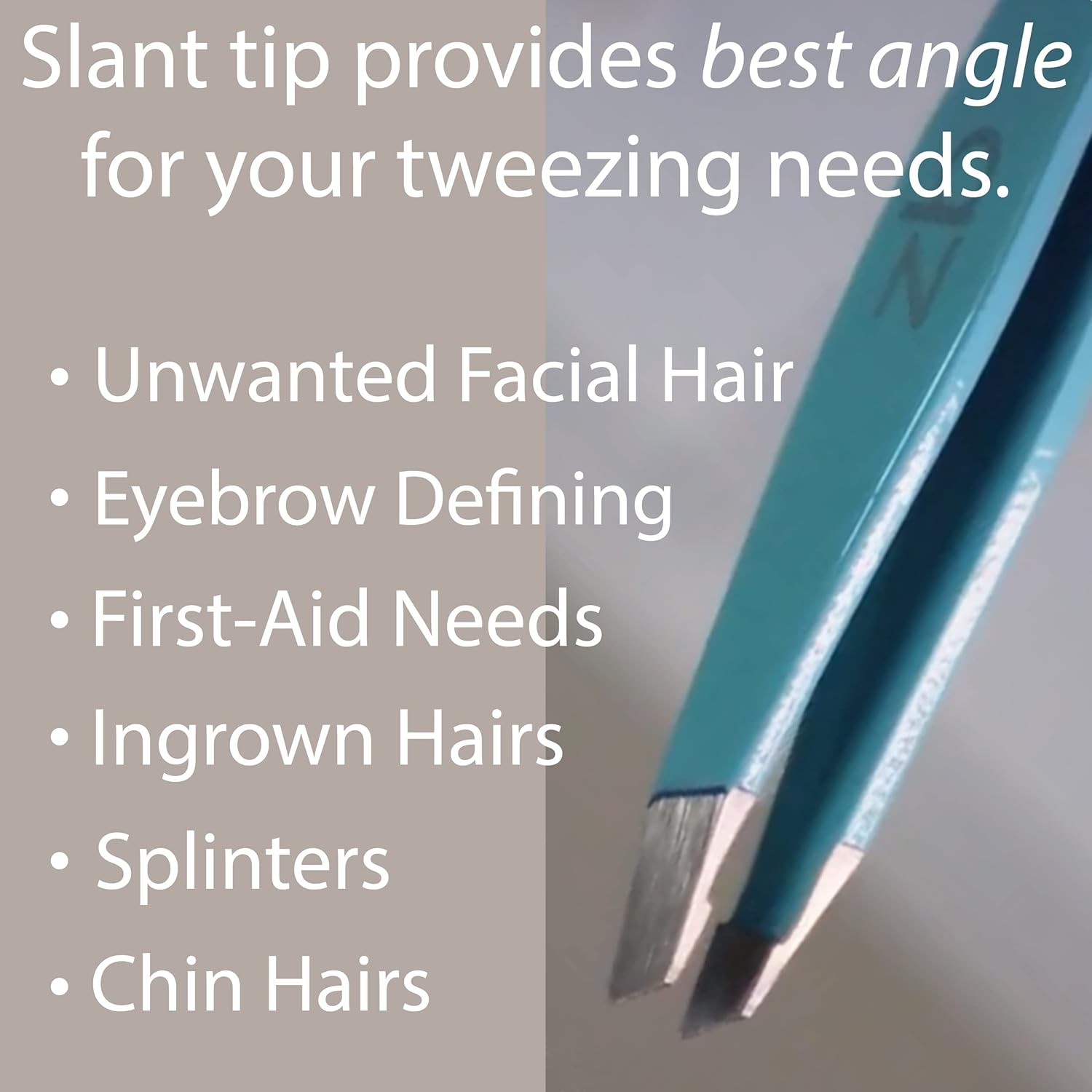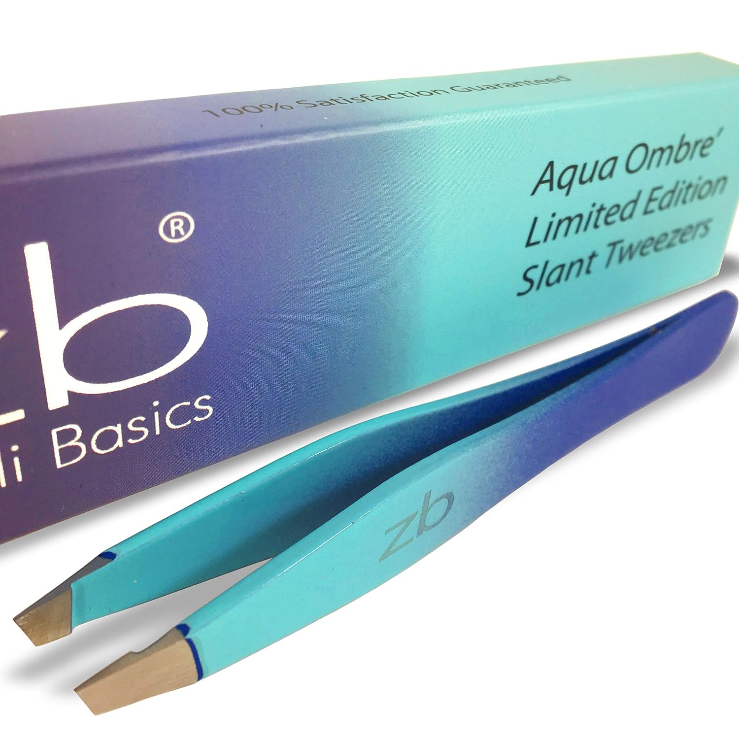 Zizzili Basics Tweezers - Limited Edition Aqua Ombré Slant Tweezer - Best Tweezers for Eyebrow, Hair Removal and Your Precision Needs