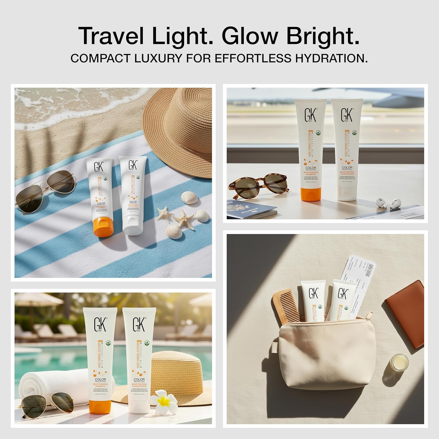 GK HAIR Shampoo &Conditioner set,Travel Size-Curly Hair Shampoo & Conditioner For Color Protection-Made with Aloe vera,Parki Butter-Free of Parabens Phthalates & Sulfate Free (3.4 Fl Oz)
