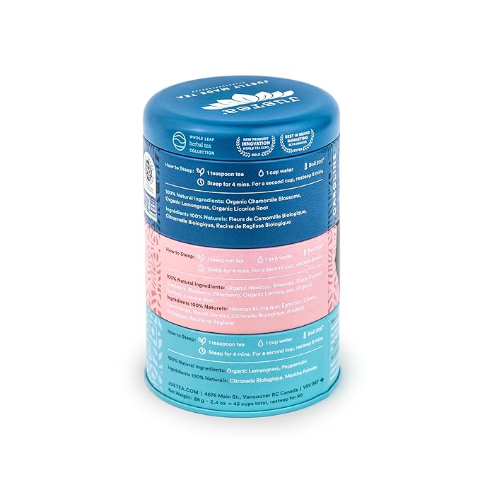 JusTea Herbal Tea Trio | Stacking Tins Variety Pack with Hand Carved Tea Spoon | Loose Leaf Tea | Caffeine Free | Award-Winning | Fair Trade | Non-GMO