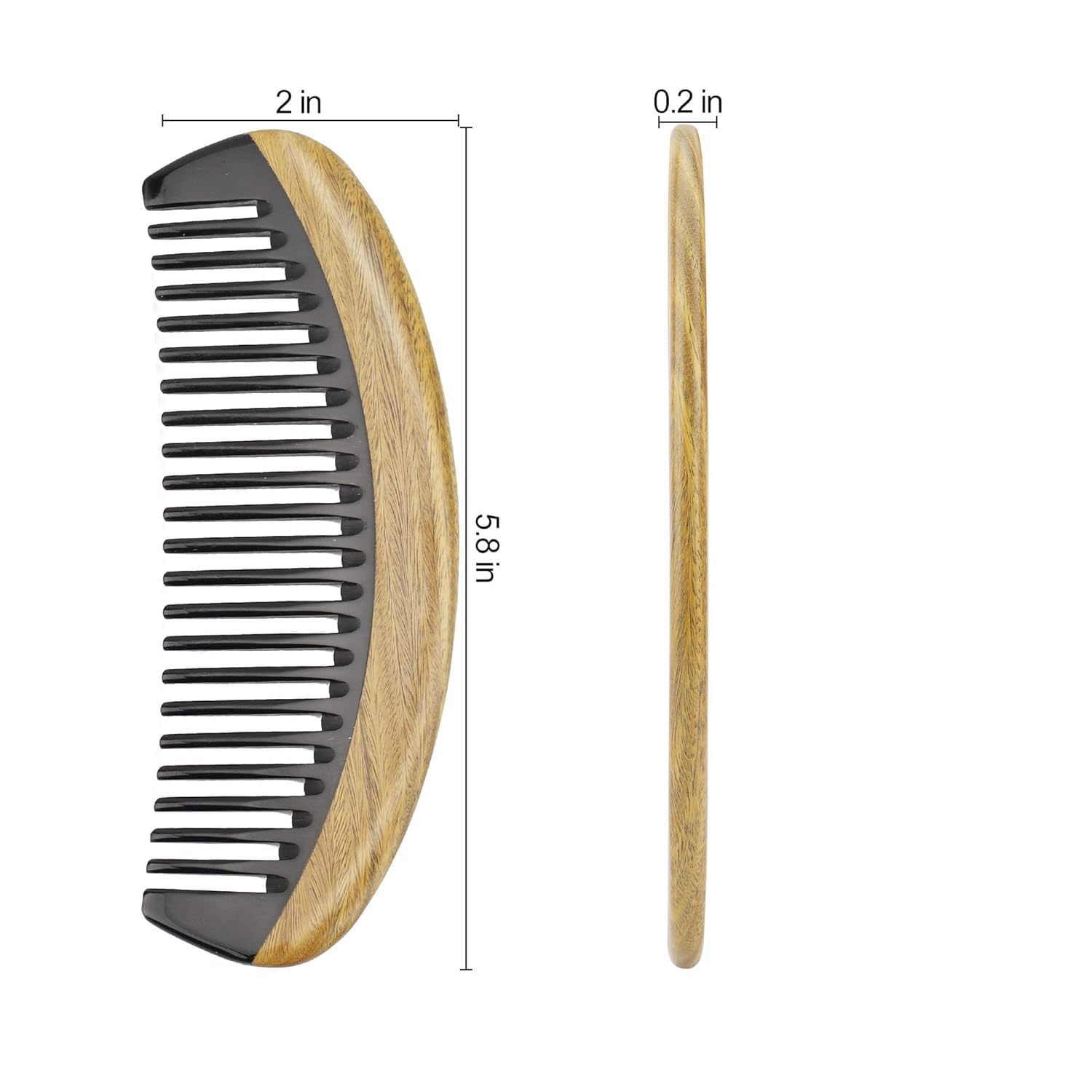 Onedor Buffalo Horn Handmade Sandalwood Hair Combs - Anti-Static Scented Natural Detangler Wooden Combs (Oval Wide Tooth)