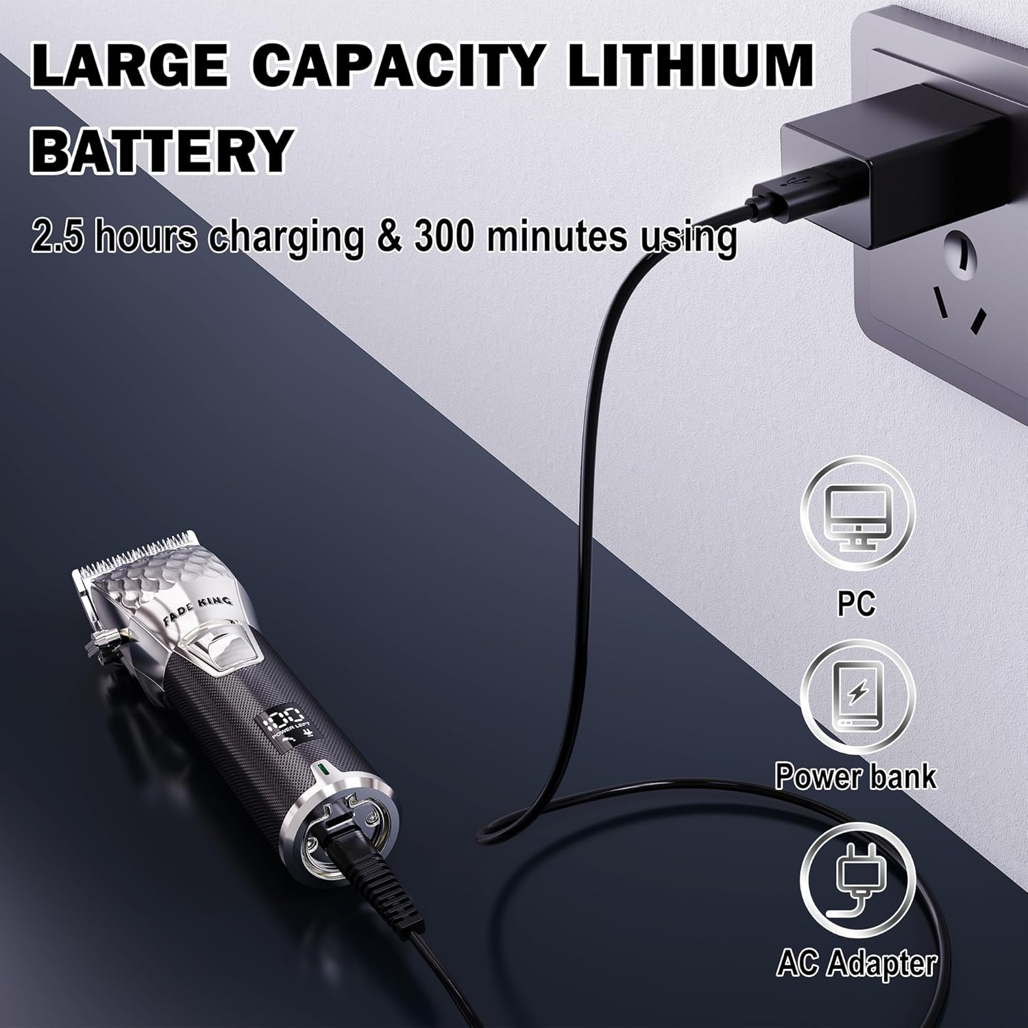 FADEKING® Professional Hair Clippers for Men - Cordless Hair Clippers, LCD Display Barber Clippers for Hair Cutting & Mens Grooming with Travel Case(Silver+Black)
