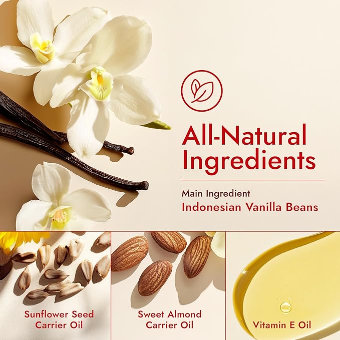 - Comfort weary bodies and bestow extra moisture to skin with this vanilla body oil. Dispense 1-2 pumps of warming body oil massage oil and gently massage into clean, dry skin