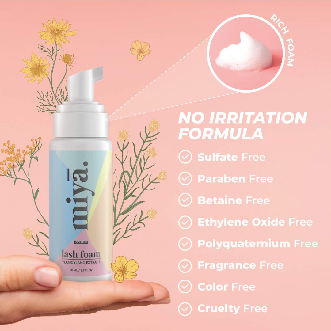 - ๐ฅ KEEP YOUR LASHES GORGEOUS & HEALTHY with Miya Lash Foam Cleanser. This premium eyelash cleanser for extensions will gently remove any impurities around the eye such as dead skin, oil, dust & makeup. As well as extending the life of your beautiful lash extensions, it also improves eyelid hygiene and prevents blepharitis & styes. It comes with a feather-soft cleaning brush - a handy tool so you can easily clean between the lash line thoroughly whilst enjoying an eye massage at the same time!