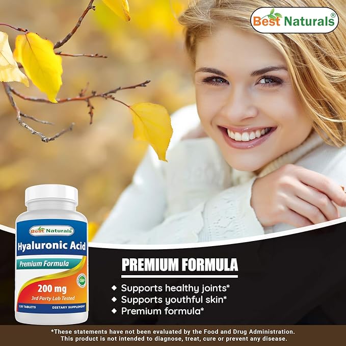 Best Naturals Hyaluronic Acid 200 mg 120 Tablets (Non-GMO, Gluten Free) - Promotes Youthful Healthy Skin & Healthy Joint Function (120 Count (Pack of 1))