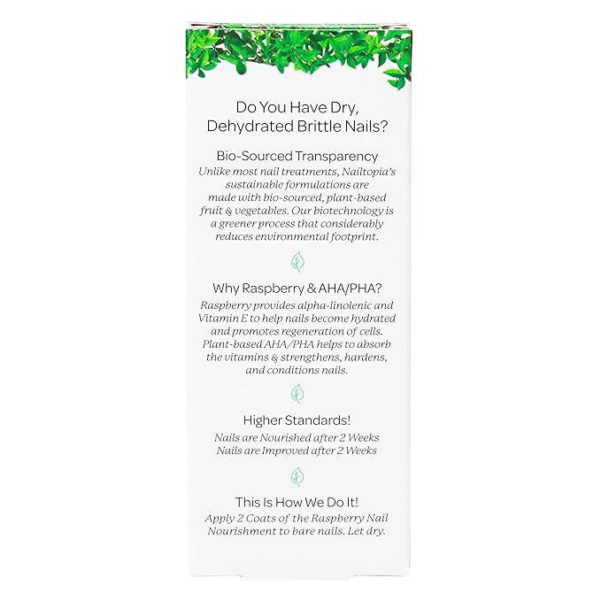 - A BOOST OF RASPBERRY MOISTURE. Repair and care for weak, short nails with a Bio-Sourced, Plant-Based Raspberry nail treatment, that nourishes nails with essential vitamins for quick growth- see longer, stronger nails after just two weeks of use.