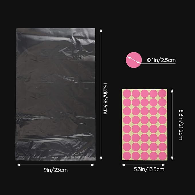 - 【Liners Size--Small】Bag--9" x 15.2" (23 x 38.5 cm); Totally 500 counts of plastic bags and 600 of stickers.