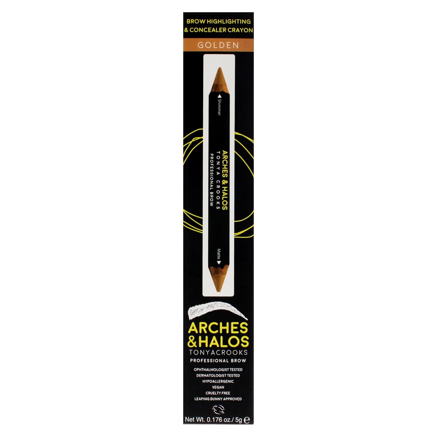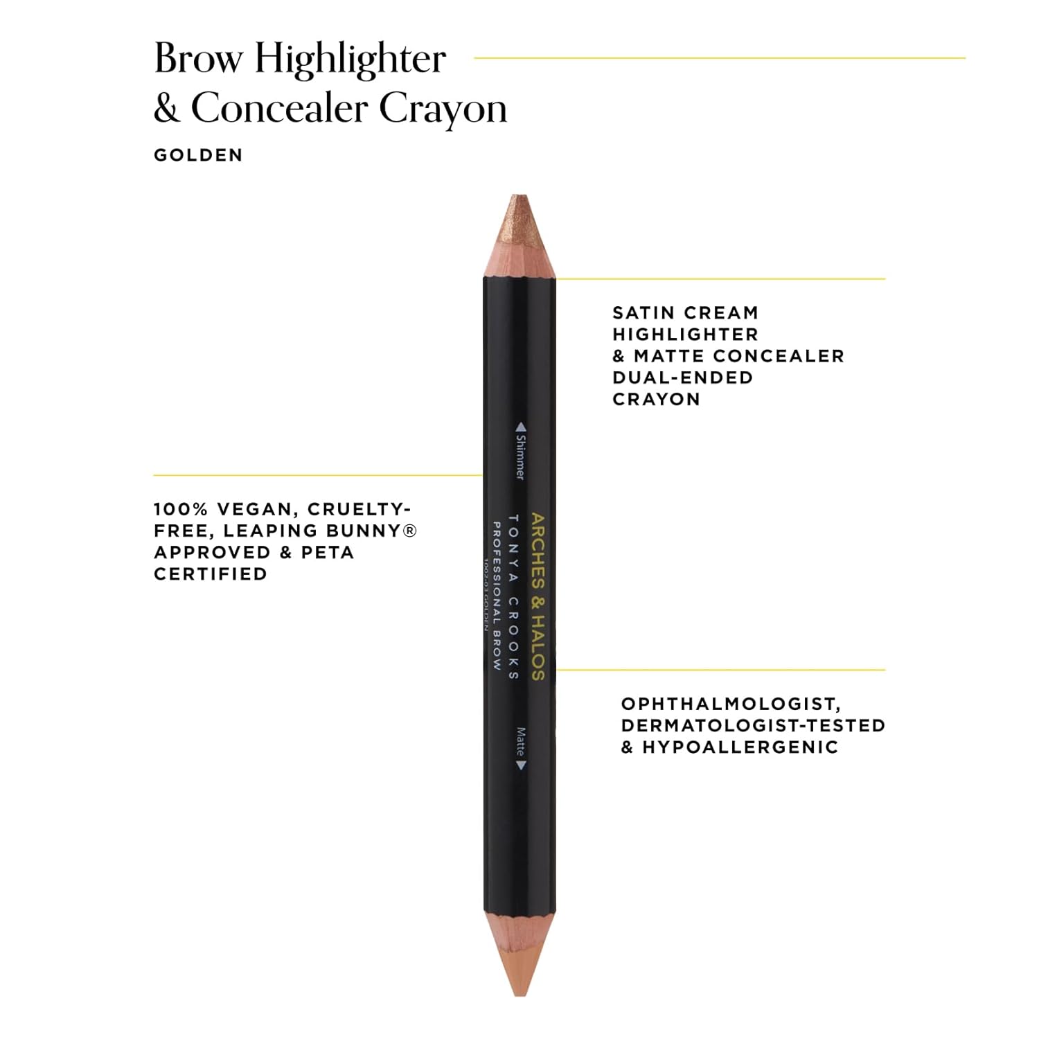 Arches & Halos Brow Highlighting and Concealer Crayon - Golden - Shaping and Shimmer Eyebrow Stick and Highlighter Duo - Soft, Ultra Creamy Formula - Define, and Sculpt for Sharp Brows - 0.176 oz