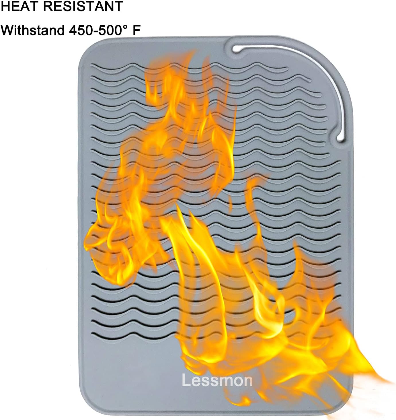 - Bigger Wrap & Holder - New, Larger 11 in x 7.5 in Lessmon Silicone Mat! Our mat can wrap the curling iron’s hot part, or you can just put the heated tools on the mat to protect your counter from heating damage. The redesigned size mat can stand 2 or more hot hair tools at a time, to make your hair styling more convenient and happier.